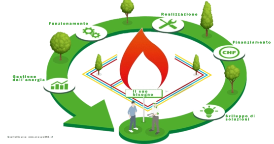 Nel caso di impianti di contracting energetico, una società (contractor) si assume la responsabilità della pianificazione, del finanziamento, della costruzione e dell'esercizio dell’impianto.