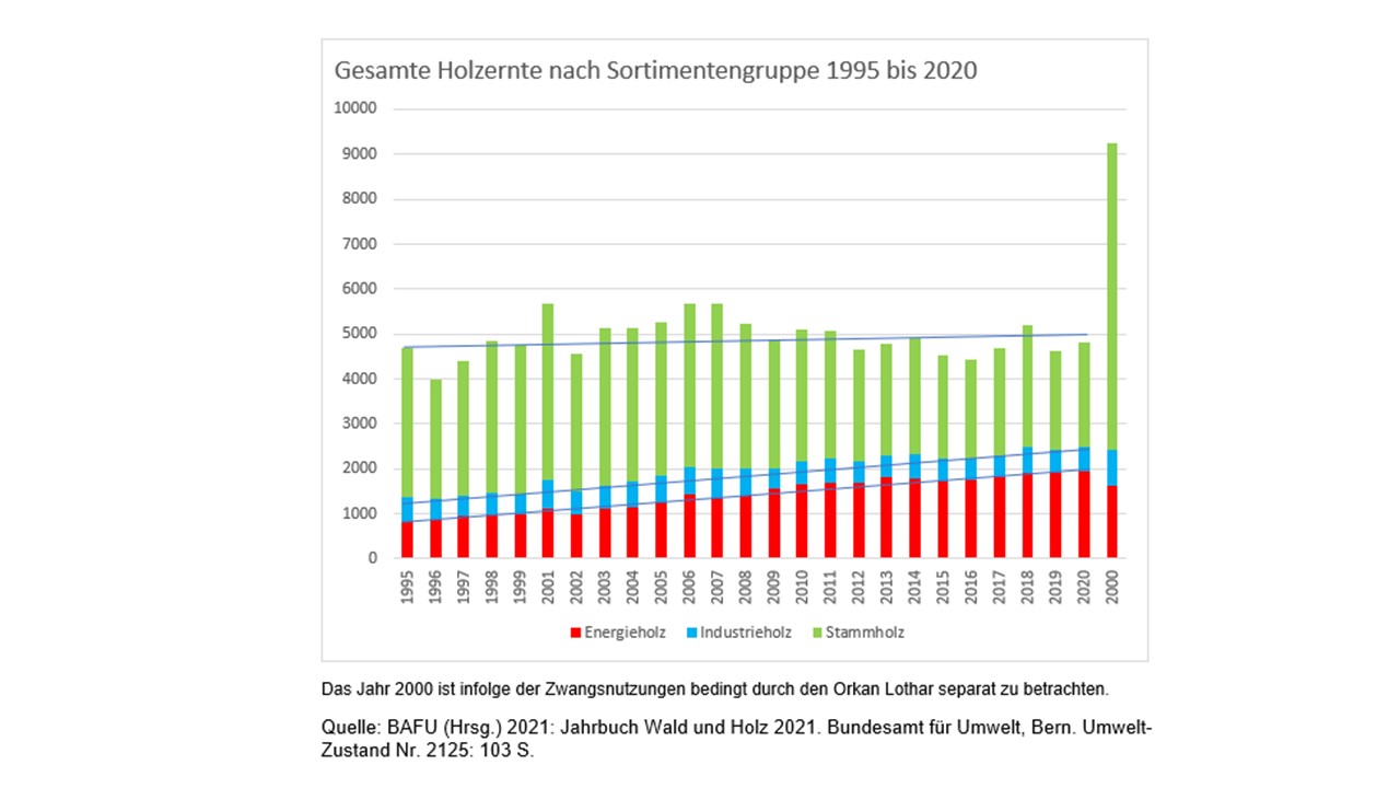 Nei boschi svizzeri ricresce più legno di quello che viene utilizzato. Il legno è un materiale da costruzione e un vettore energetico rispettoso del clima, indigeno, rinnovabile e indipendente da oligarchi e da Nazioni guerrafondaie.