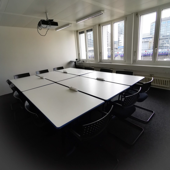Affittiamo una sala riunioni arredata in modo ideale per corsi, sessioni di formazione e riunioni di lavoro per un massimo di 14 persone nella Neugasse 10, a pochi passi dalla stazione ferroviaria principale.